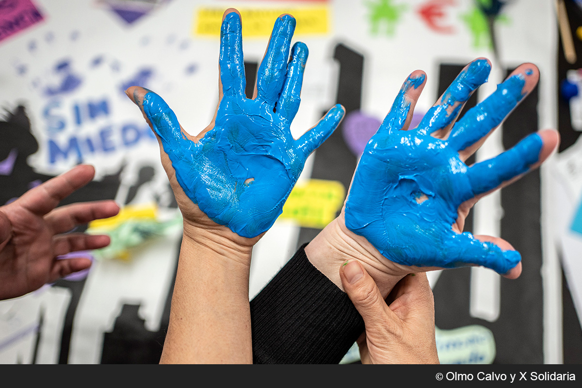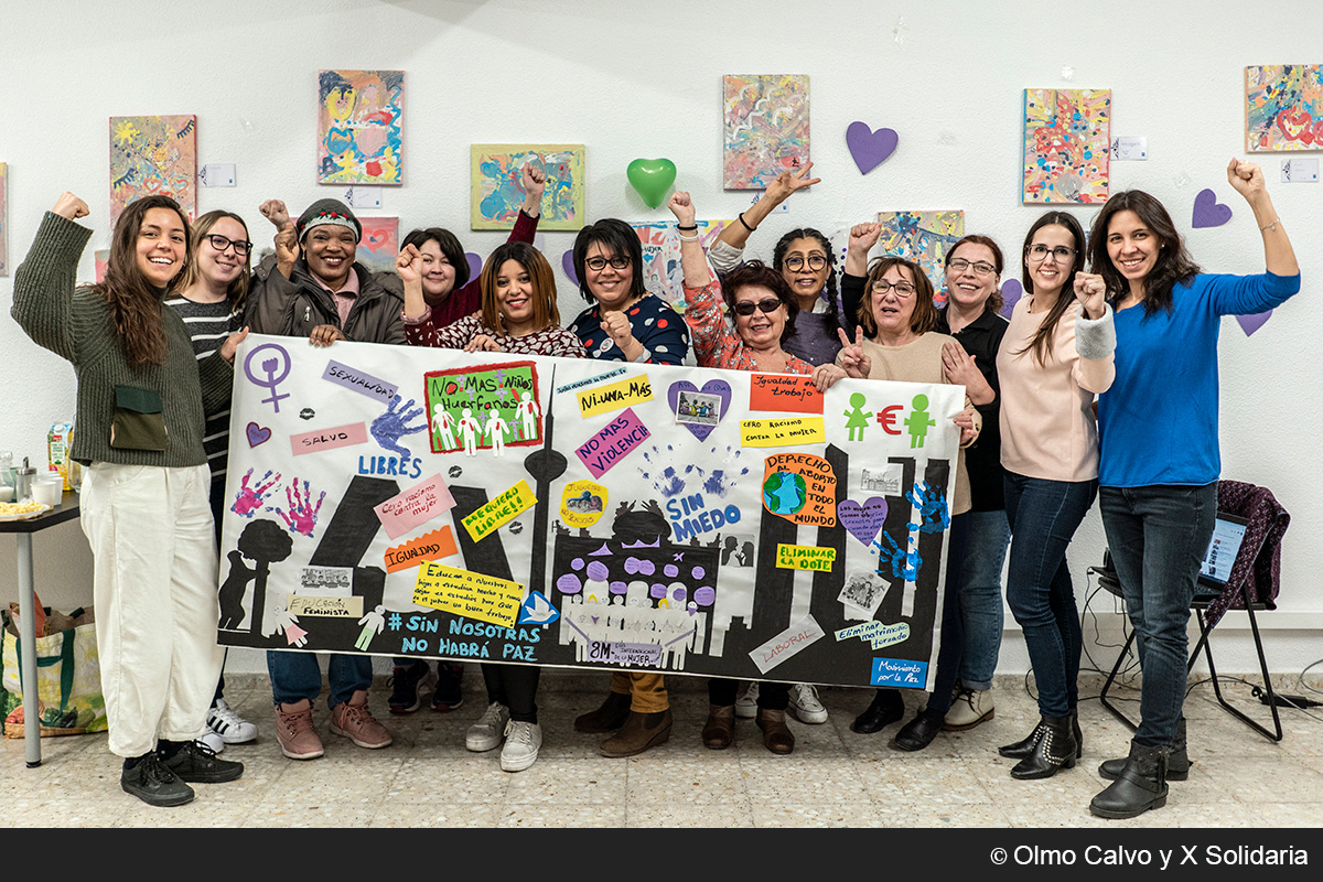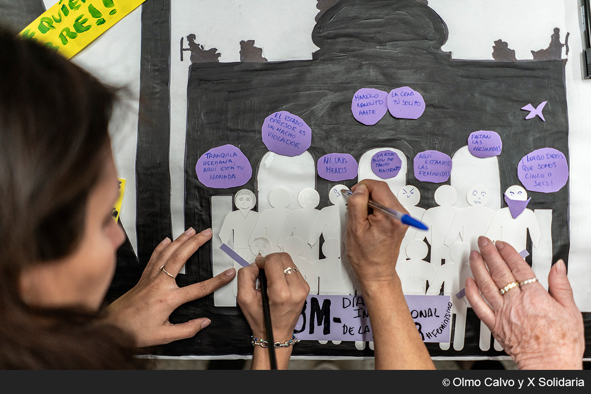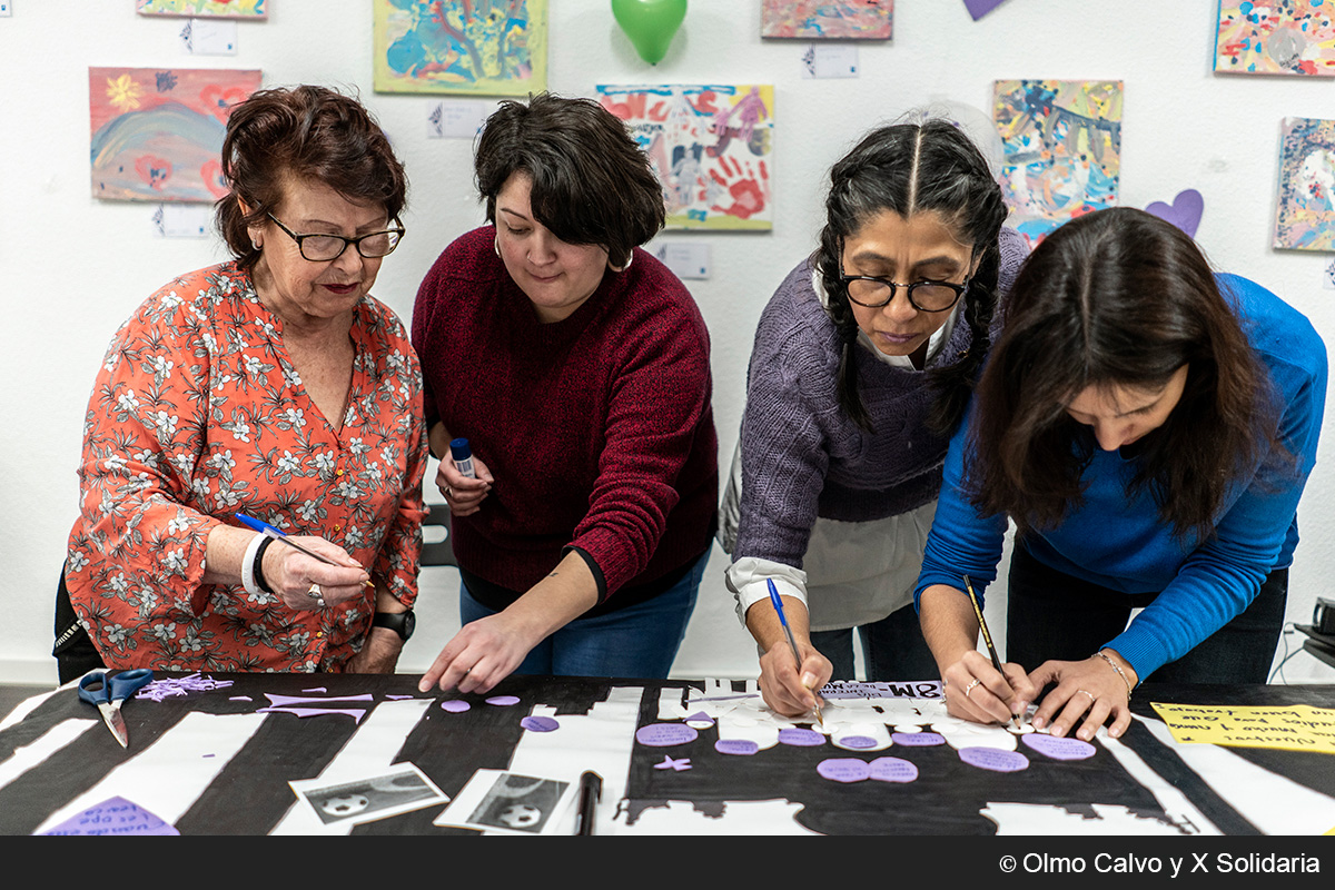 Además de recibir atención individual por parte de las profesionales de la organización, también realizan actividades donde las mujeres interactúan entre ellas y se expresan, como este mural del 8 de Marzo titulado "La sociedad que queremos", a través del cual comparten sus inquietudes y deseos, así como sus experiencias y vivencias que las ayudan en su día a día.